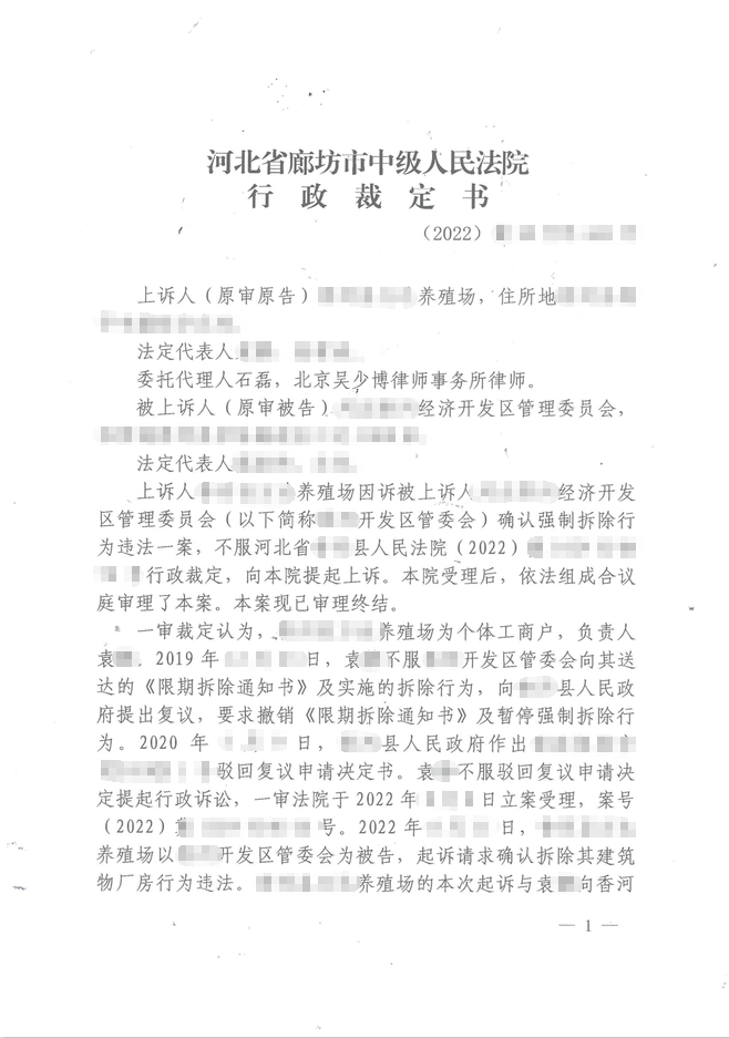 哈爾濱胡先生養(yǎng)殖場拆遷維權(quán)獲得滿意賠償