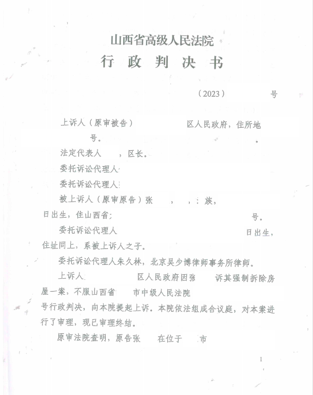 本案代理律師 北京吳少博律師事務(wù)所朱久林 案情簡介: 長期以來,張某居住于山西省某市的